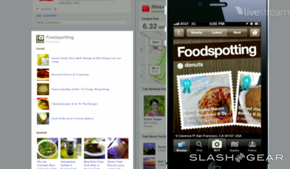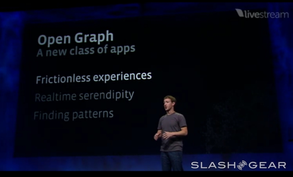 Open Graph is a whole new class of apps, this is the main message that Zuckerberg wants to push forth this week at f8 2011. Open Graph apps allow you to add activity to your news stream without having to press "OK" ever again. No more prompts, ever. With this functionality, "discovering new things through your friends", one of the main goals of the future of apps on Facebook, being accomplished simply. With Open Graph apps you will get a single "permissions" page that'll have you allowing all publishing all at once – Frictionless Experiences and Real-time Serendipity are the big power-points here, and sharing on the fly in real time is the vehicle.
