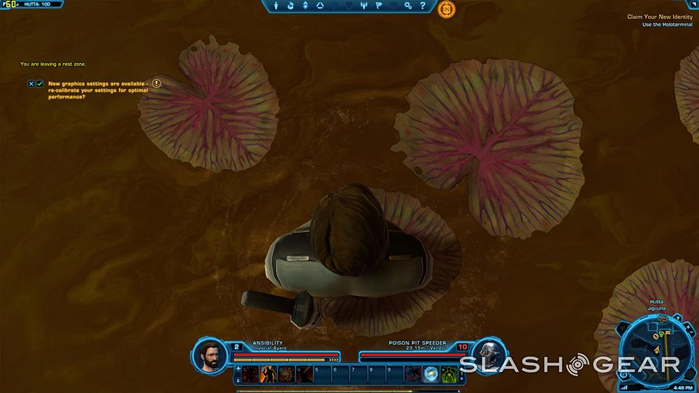 Even Star Wars: The Old Republic looks great. As it's included in NVIDIA's GeForce Experience list of games that can be optimized for greatness automatically, we certainly had to give it a go. As it turns out, the difference between what you get in this game on a basic level and what NVIDIA can give you is immense. While the gameplay remains the same – you're still firing blasters at your opponents and rolling in the Force like mad – you can take part in the deepest visual details the developers intended you to see. Just look at that water ripple!