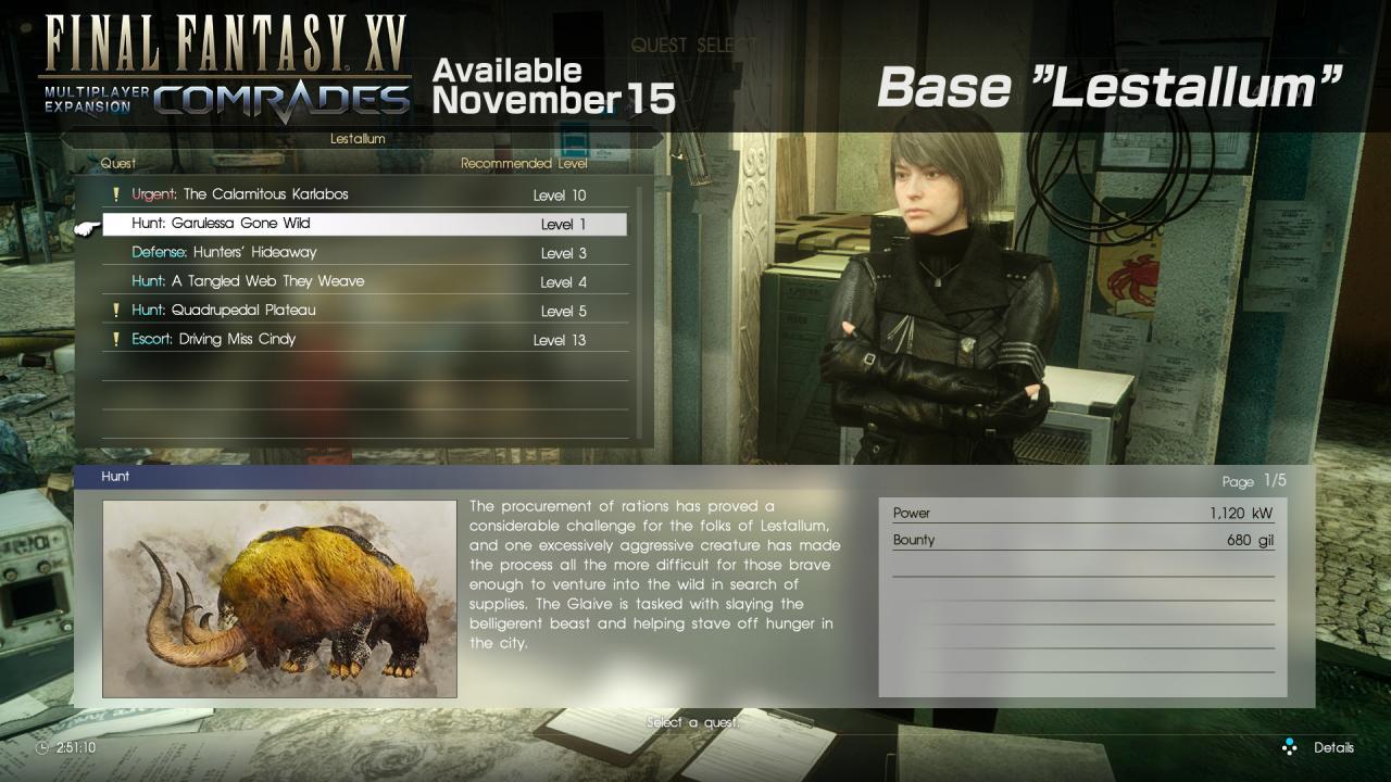 Final Fantasy XV "Comrades" is now available on the Xbox and PlayStation stores for $19.99. But you can automatically download the nearly 8 GB expansion if you purchased the Final Fantasy XV Season Pass for $24.99. Considering there have already been three other DLCs before this, each costing $4.99 each, the Season Pass has pretty much paid for itself at this point.