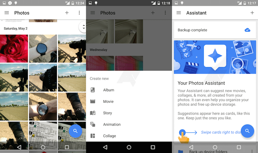 From what we can see in the images below, the reworked app, simply called "Photos," features a more intuitive interface that makes both navigation and picture editing easier. One of the key new features seems to be Assistant, likely a replacement for Auto Awesome, which can be used to create content like collages, albums, and movies, as well as edit and apply effects to images.