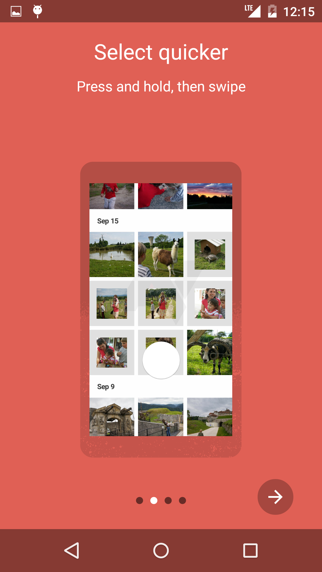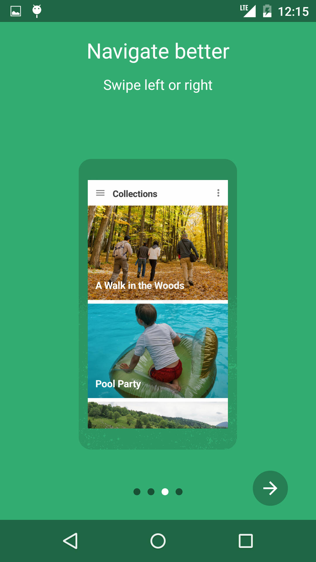 There are several new gestures to use with Photos, like pinch-to-zoom into photos, swiping to get out of them, and touch and dragging to select multiple images. Also useful will be automatic photo organization, such as face-matching, with options to sort by day, month, and a tile layout similar to the current album view of Google+ on the web.