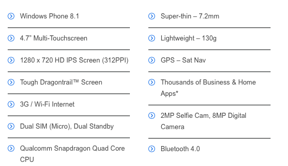The microsite is branded "Confidential Only", but is not password protected. From the placeholder website, we learn the Windows GoFone will run Windows 8.1, have a 4.7-inch 1280 x 720 screen, and a quad-core Snapdragon SoC. An 8MP camera around back compliments a 2MP shooter up front, and 3G/WiFi are your connectivity methods.
