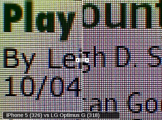 The iPhone 5, LG Optimus G, Samsung GALAXY S 4, Sony Xperia Z, and HTC One all had their displays put under a digital microscope, with comparison images of text taken between different combinations of the aforementioned smartphones being assembled together into slider images, allowing users to slide back and forth over the close-up shots and see them in a way their naked eyes can't.
