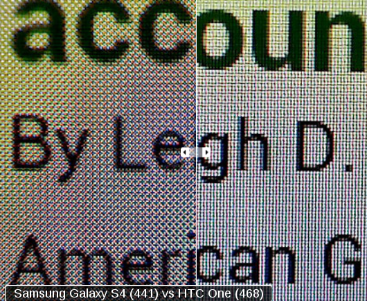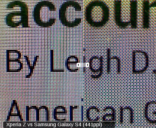 Not to be disappointing, but the answer is, "It depends." As you can see in the images, which we have in the gallery below, you can see the individual differences in the technologies used in the displays, but aside from that the subtle differences between the text is still obvious, and largely open to interpretation. For example, the Xperia Z and the GALAXY S 4 both offer 441ppi, but when looked at up close, one would be tempted to proclaim Sony the best of the two, with its lettering coming in very clear and smooth.