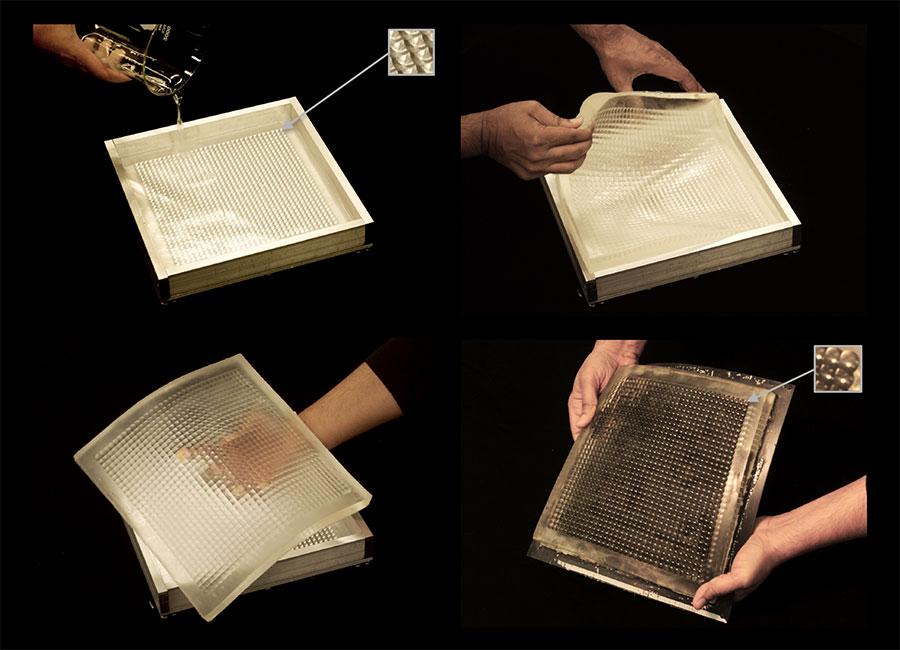 The team is working to fix this issue over an entire range of sheet curvatures by designing a deformable elastic lens array. With careful design this flexible elastic array will change shape and focal length when bent in a way that doesn't cause aliasing. The team has designed this type of optics and says that the optics it has designed can be combined with a flexible sensor array to make a complete sheet camera.
