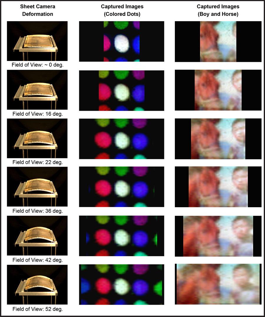 Researchers at Columbia University are working on a very different approach to imaging that could one day usher in a new era for capturing visual information. The researchers are working on flexible sheet cameras with elastic optics that can be bent and twisted. Ideally this sort of camera system would be made like a roll of plastic sheeting and could be used to image in ways that conventional cameras are unable to do.