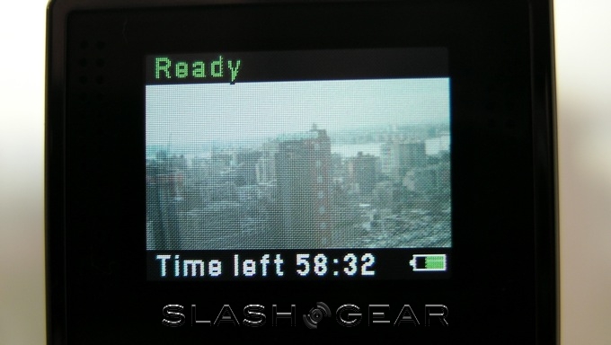 The memory may be doubled – 4GB compared to the regular Mino's 2GB – but the recording time isn't. 720p footage takes up twice the space of SD, so you still get room for an hour of video. Battery life from the non-user-replaceable rechargeable Li-Ion pack is rated at two hours mixed use (standby, filming and reviewing) or 90 minutes constant recording; it's too early for me to say how accurate those figures are, but given that the MinoHD recharges when you plug it into a USB port it'll always be getting regular top-ups when you transfer footage off.