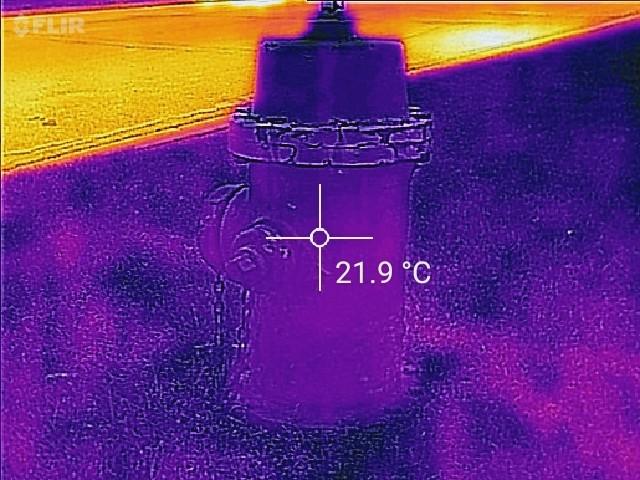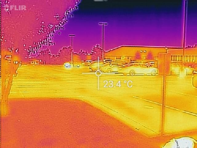 As you'll see in the examples we've captured here, FLIR ONE comes with the ability to overlay temperature. You can make this crosshair show you degrees celsius or fahrenheit.