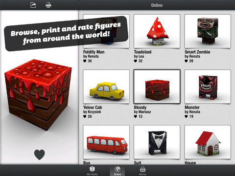 iPad papercraft app Foldify has arrived in the App Store, turning your Apple tablet into a 3D figure creator (even if you don't know which end of a pen to put on the paper). Previewed last month, the app allows you to create a the paper or cardboard template for a folded 3D figure on your tablet, with ten designs to choose from and the ability to customize colors and appearance.
