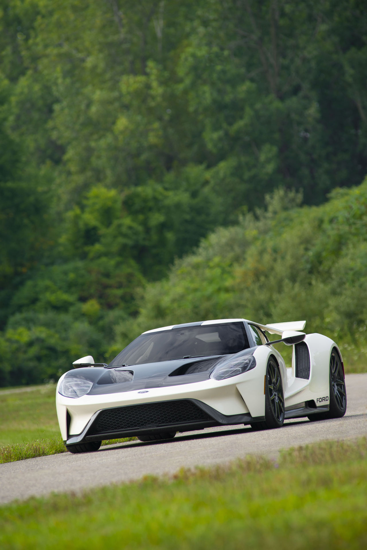 Those Ford GT Heritage Edition cars have always been modern interpretations of iconic cars of the past. The 2022 Ford GT '64 Heritage Edition has Wimbledon White paint and features a triple racing stripe. The special edition car also has exposed carbon fiber behind Antimatter Blue-painted carbon fiber wheels. In addition, the seats are covered in Lightspeed Blue Alcantara.