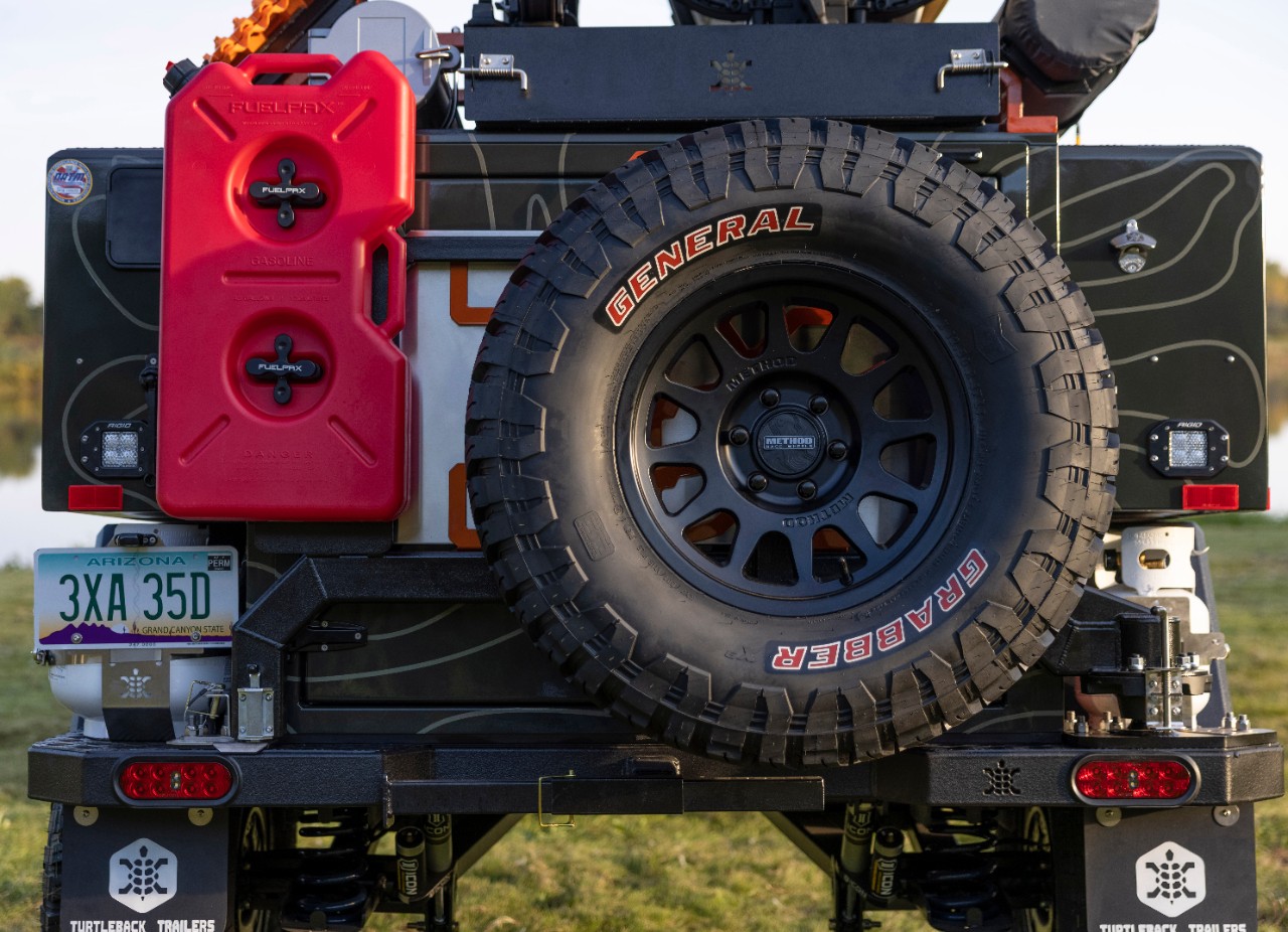 The Ford Expedition Timberline Off-Grid Concept also has a Turtleback Expedition Series Trailer with the same wheels and tires as the concept. The trailer packs a two-burner propane stove, a deep-well sink, a pancake fuel, two drop-down tables, a 42-gallon water tank, and a six-gallon water heater with an external shower hookup. Illumination is courtesy of a 50-inch Rigid light bar above the windshield, a 20-inch Rigid light bar below the front grille, Rigid spotlights on the wheel wells, and a D-SS Rigid side shooter cube lights on the hood.