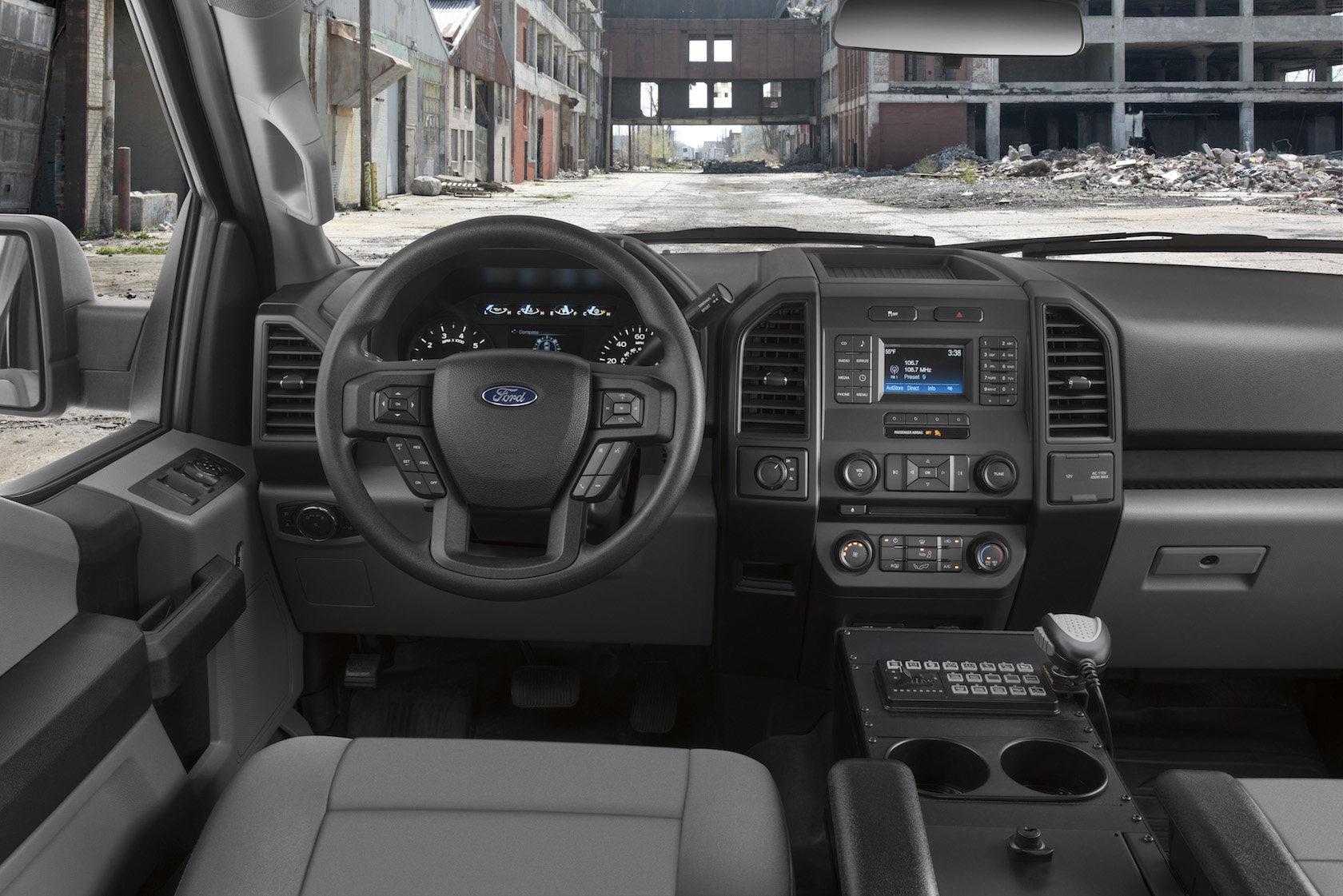 Under the hood, there's Ford's 3.5-liter EcoBoost engine, four-wheel drive, and a 10-speed SelectShift transmission. Altogether, that's good for 375 horsepower and 470 lb-ft. of torque; the most, Ford points out, of any pursuit-rated police vehicle. Of course, the big F-150 is probably a fair amount heavier than its siblings, too.