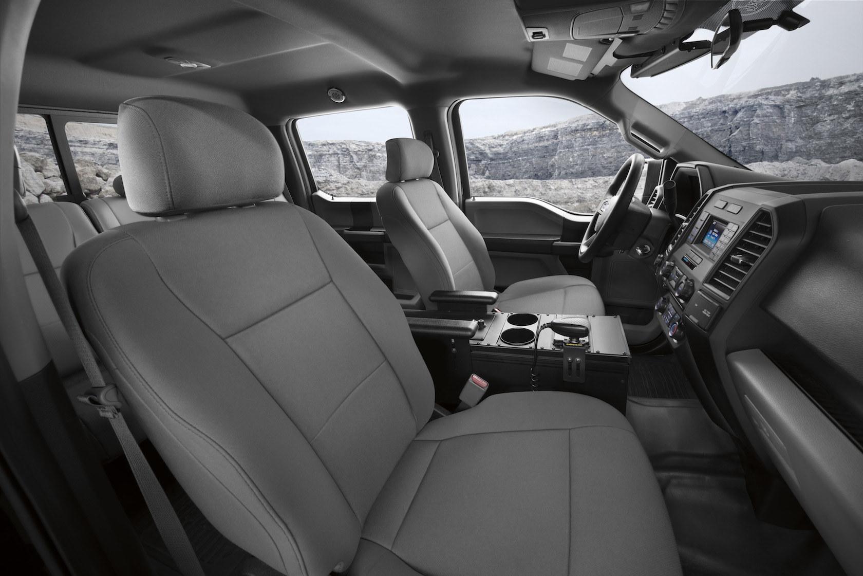 Since it's almost certain that the trucks will be loaded down with all the electronics of a modern law enforcement vehicle, the alternator is upgraded to a high-output, 240-amp system. There's also a police-calibrated speedometer, and engine hour and engine idle hour meters. The latter – and the fuel used while police vehicles sit stationary but with the engine turned on – has come under renewed focus in recent years, for both environmental and cost reasons. Indeed, Ford's upcoming Police Responder Hybrid Sedan pitches its gas-electric powertrain specifically as a way to avoid burning unnecessary fuel while the car is idle.