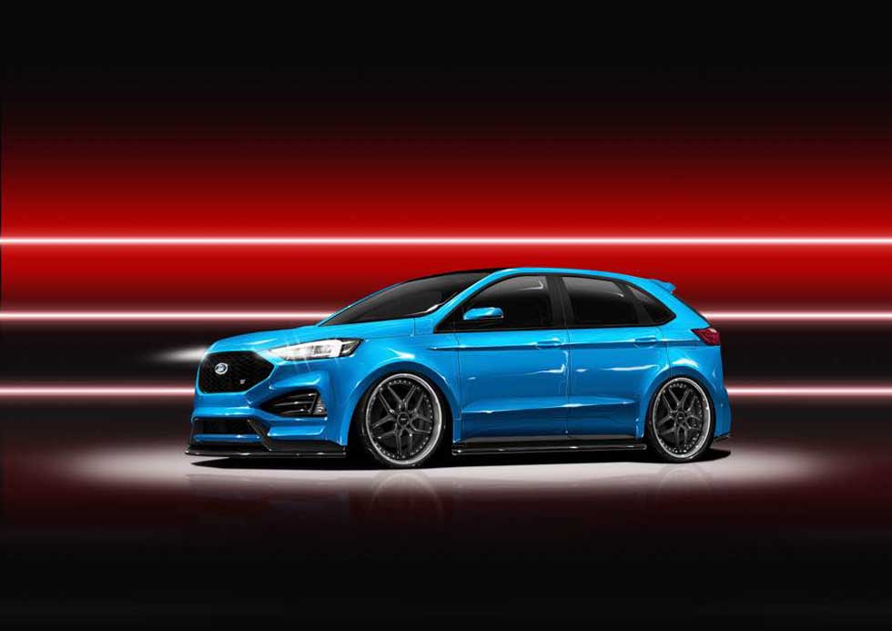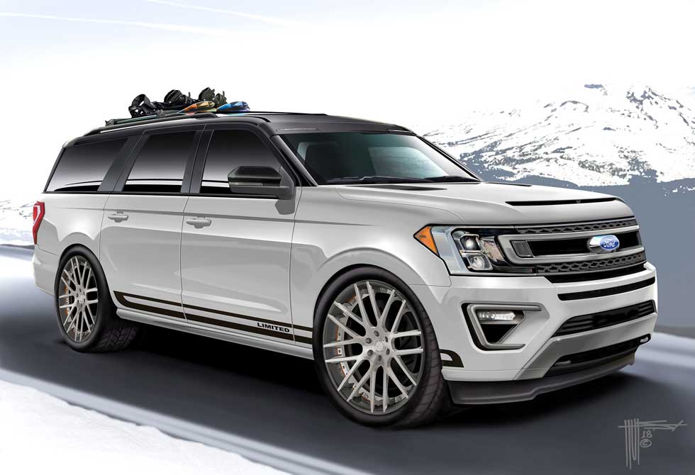 SpeedKore is on hand with an F-150 that was designed with help of country music star Brantley Gilbert, that truck has a lowered performance look. On the raised truck front is the Gen-2 Full-Race motorsports "Freak-O-Boost" that makes more power with a turbo upgrade to the 3.5L EcoBoost. Custom SUVs include tweaked Edge ST and an off-road styled Expedition that looks very cool.