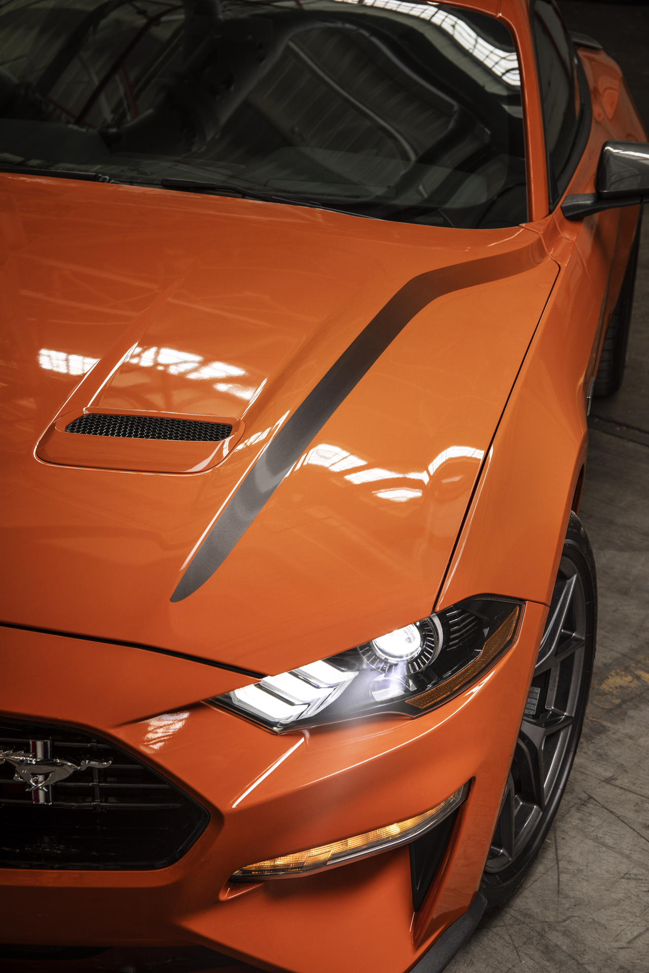 The car gets chassis and aerodynamic upgrades from the Mustang GT Performance Package. 2.3L High Performance Package buyers get a car with 53/47 weight distribution, four-piston fixed front brake calipers, performance calibration for power steering, antilock brakes, and stability control. The car offers five drive modes and a 3.55:1 limited-slip rear axle.
