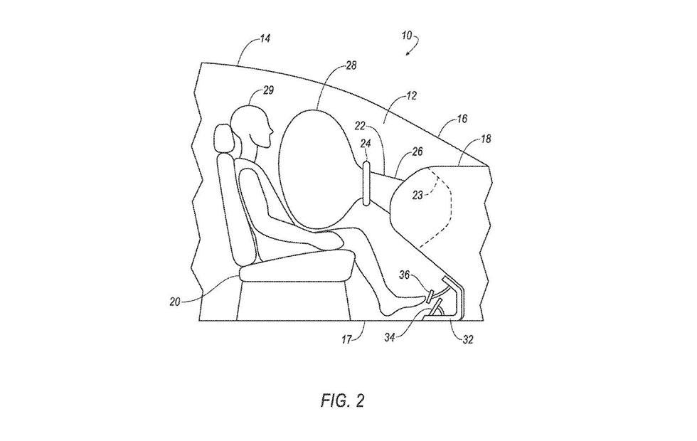 To keep the person in the driver's spot safe, when the steering wheel is in the car it would have its own airbag. When the wheel isn't installed, an airbag would come out of the dash like the passenger side airbag system. Ford also notes that the steering wheel could have a physical connection to the road using a splined shaft like current cars, or it could use drive by wire.