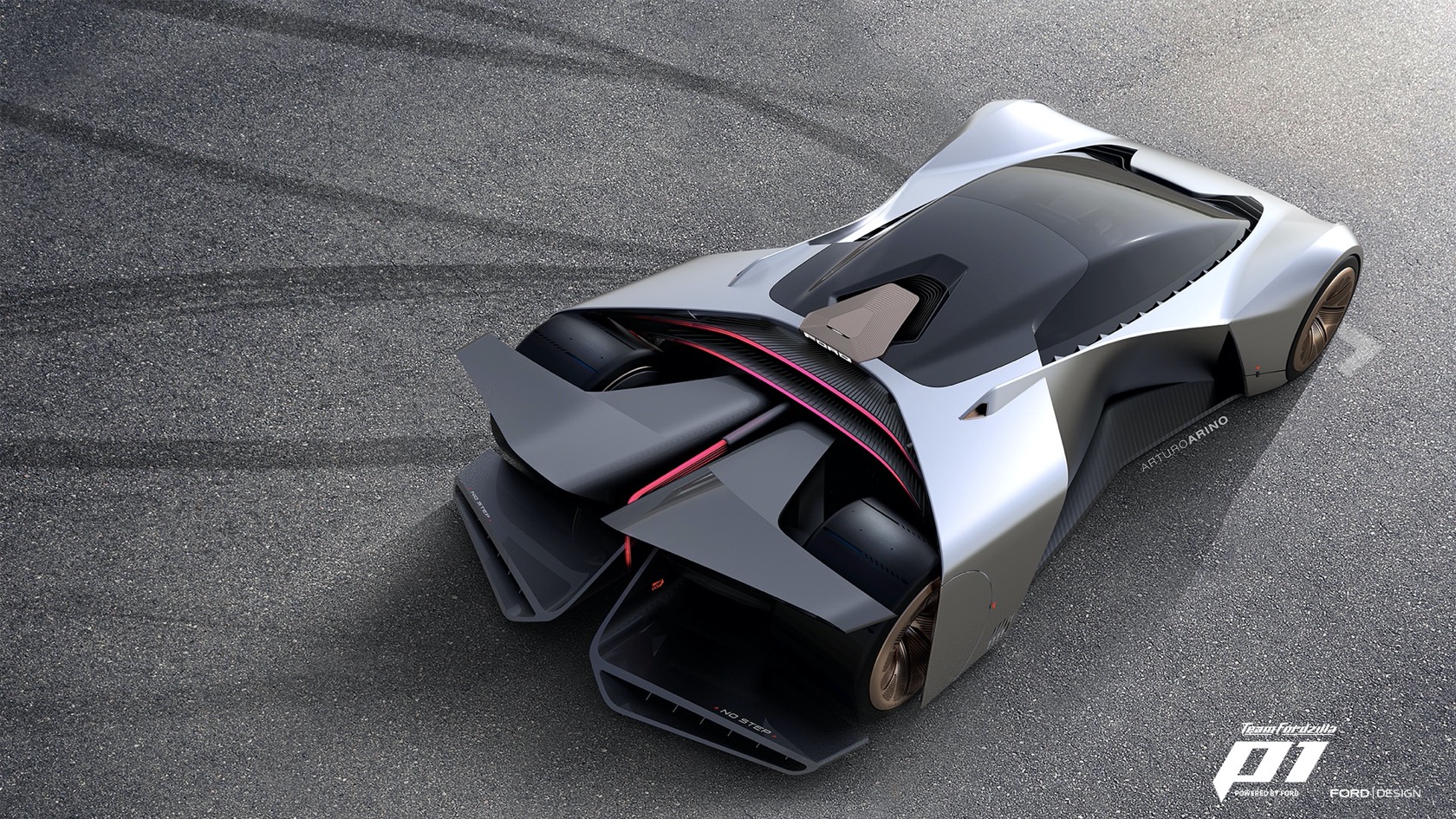 The goal was to develop "the ultimate virtual racing car," and fans were involved at various stages through the design process. Eventually, with feedback gathered on everything from cockpit style to drivetrain, two final concepts were put up to a vote. The winning design was by Ford exterior designer Arturo Ariño.