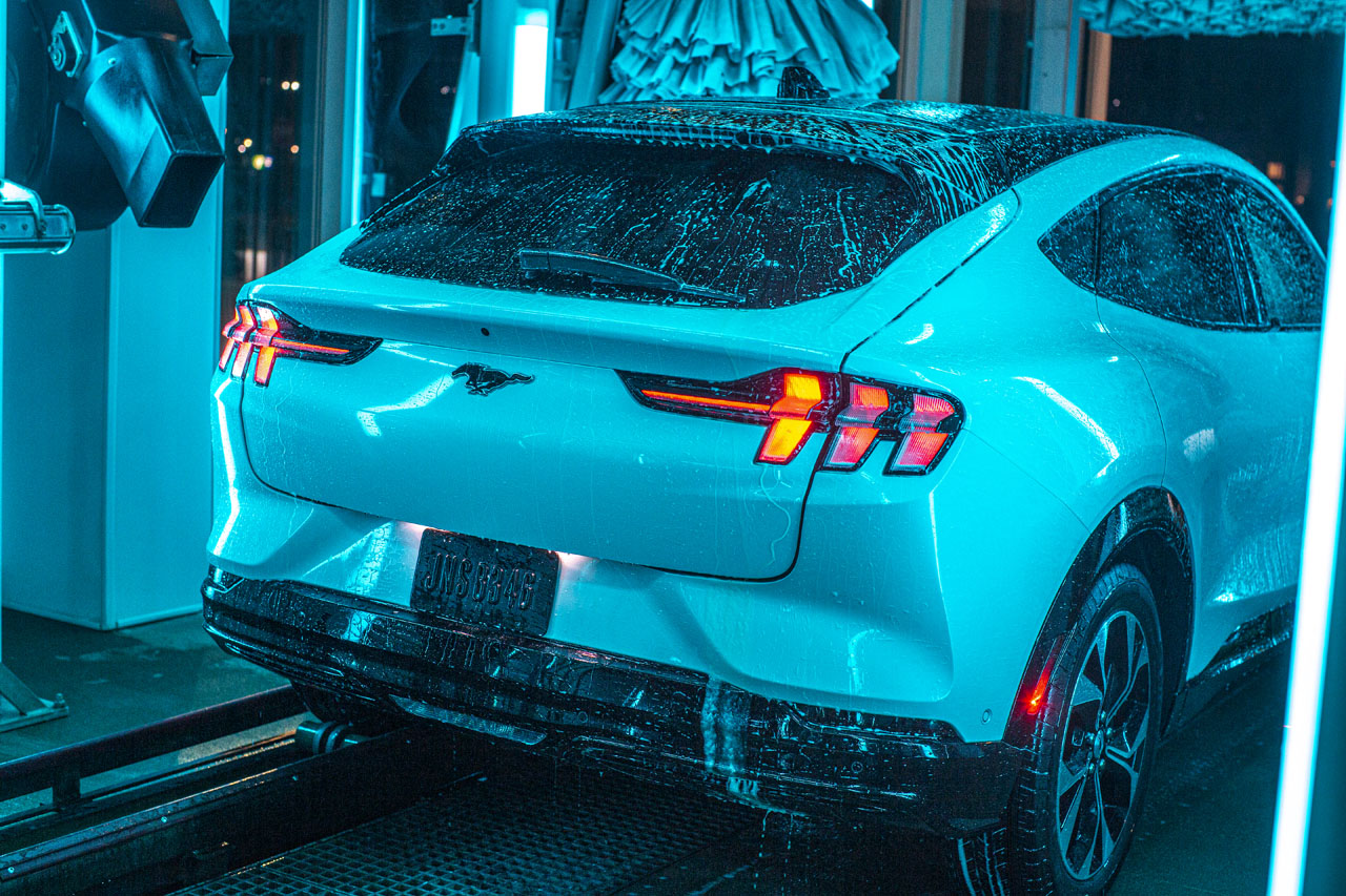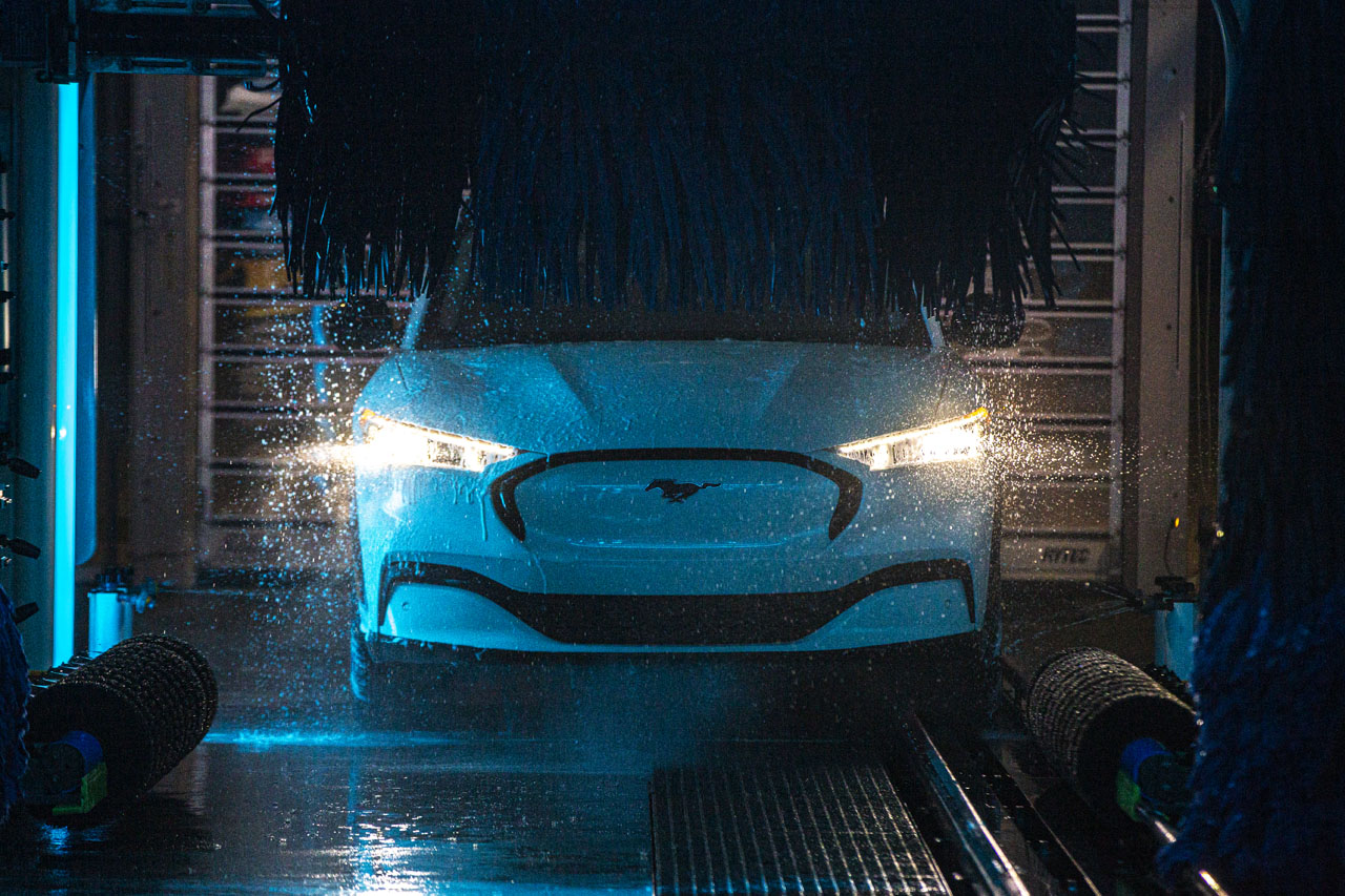 That is equivalent to a wash every two weeks for more than two years. Ford also demonstrated that the Mach-E could be placed into neutral, so it works with an automatic wash conveyor belt system.