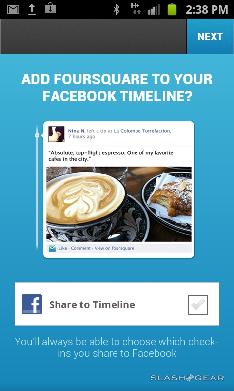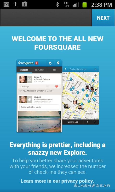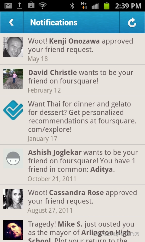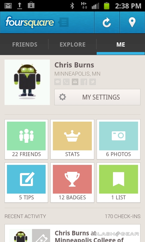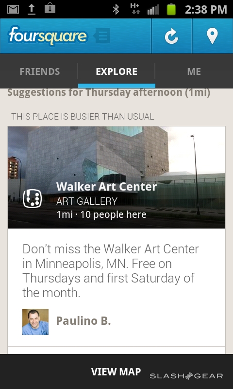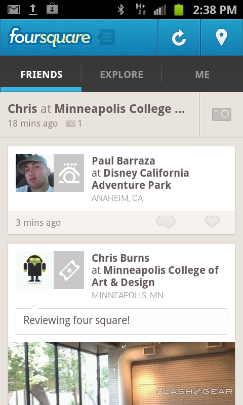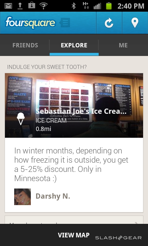 When it's time for lunch, you'll be shown some lovely locations to eat right near you as recommended by Foursquare citizens who have been there – or at least who have said they've been there. You get updates now in that familiar red speech bubble that you cannot resist when your friends like or comment on what you've just done, and your feed of friends is still the central point for keeping up in the greater Foursquare check-in world.