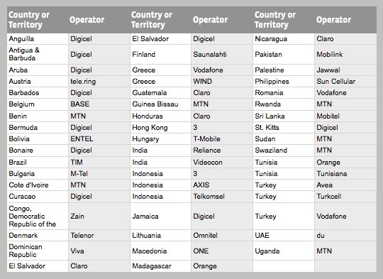The full list of countries and mobile networks participating is in the gallery below. Facebook expects to sign up Telstra in Australia, Movistar in El Salvador, SFR in France, XL in Indonesia, DiGi in Malaysia, Telecom NZ in New Zealand, SMART in the Philippines, Vodafone in Qatar, Digicel in Suriname and Trinidad and Tobago, 3 in the UK, and MTN in Cameroon and Guinea Conakry "soon".