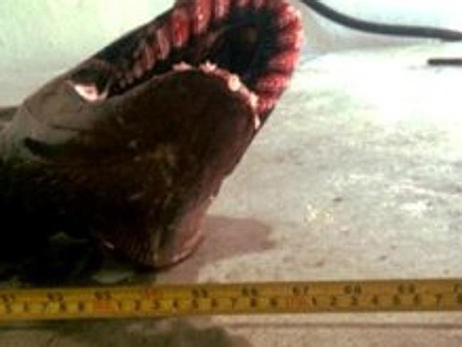 The frilled shark you see above was nearly as long as the longest specimen ever found – or constructed of bones – at 2-meters front to back. All specimens captured have originally had dark brown skin.