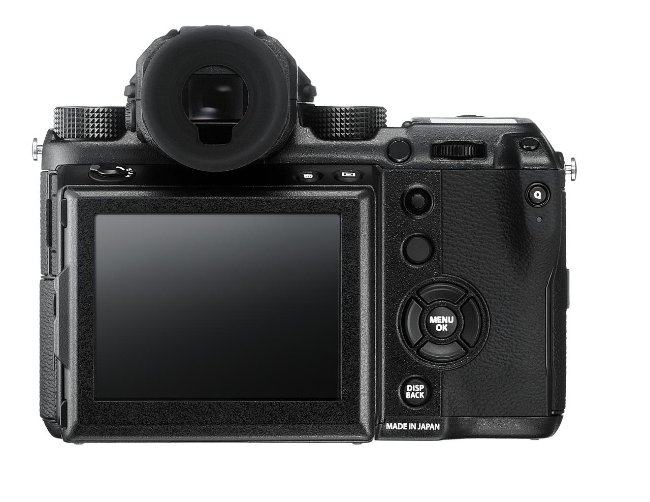 As far as viewfinders are concerned, the GFX 50S gives users two options. One is the 3.2-inch 2.36M dot touch LCD panel, with three-directional tilting action, for framing shots, playing back recorded videos, and adjusting settings. Perhaps more interesting is the 3.69M dot organic EL detachable electronic viewfinder. With an appropriate accessory, like the EVF-TL1 EVF tilt adapter, one can tilt the EVF up to 90 degrees vertically or swung horizontally up to 45 degrees in either direction.