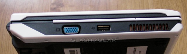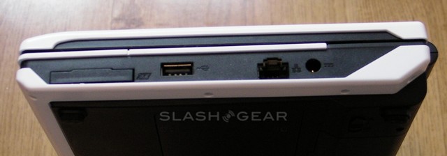 Inside, there's the usual Intel Atom N270 1.6GHz processor, paired with 1GB of DDR2 RAM and a rather paltry 60GB PATA hard-drive. An 80GB drive is an option, but still only half the size of what's available as standard on rival machines. Graphics are courtesy of Intel's GMA 950M chipset, and the OS is Windows XP Home. Both WiFi b/g and Bluetooth are standard fit.