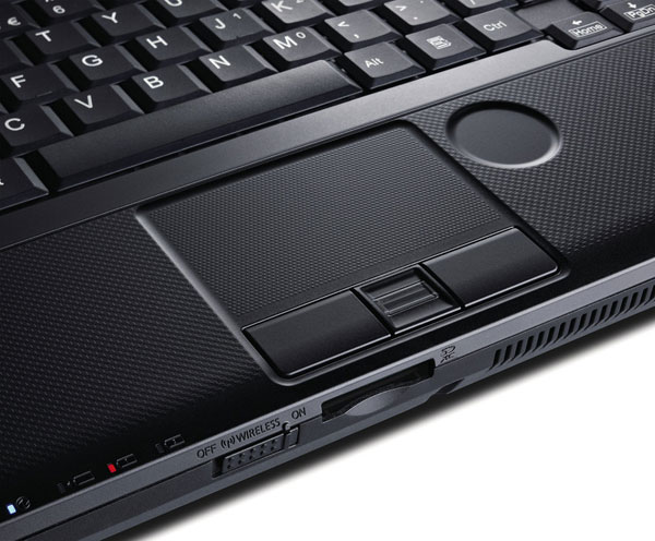 Another interesting feature is a new ScrollWheel that is located next to the touch pad on the machines. The wheel is designed to make navigation easier for scrolling documents and web pages up and down. It's not a wheel like you see on a mouse, but another small indented section similar to the track pad. The line of notebooks will also support Intel Wireless Display WiDi tech to connect wirelessly to a display or projector. The machines will also have a modular drive bay that can be fitted with a second HDD, optical drive, or that cool new bay projector we have talked about before.
