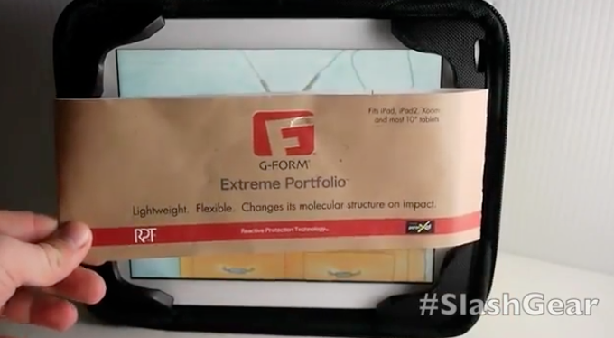 The portfolio case you're about to see is so hardcore that it can carry essentially any 10-inch tablet from here to outer space and plummet back to the ground with the tablet unharmed. This case is the baddest mother to have come out on the case circuit since the launch of the original iPad, having so much padding that you'll struggle to find a way to do the protection justice. This is the G-Form Extreme Portfolio, and if you put your iPad in it, start a movie up, toss it out of your car off of a bridge onto a rocky ground below, you'll also be able to find it easily because it's BRIGHT yellow – and it won't have been damaged either – your movie will still be rolling.