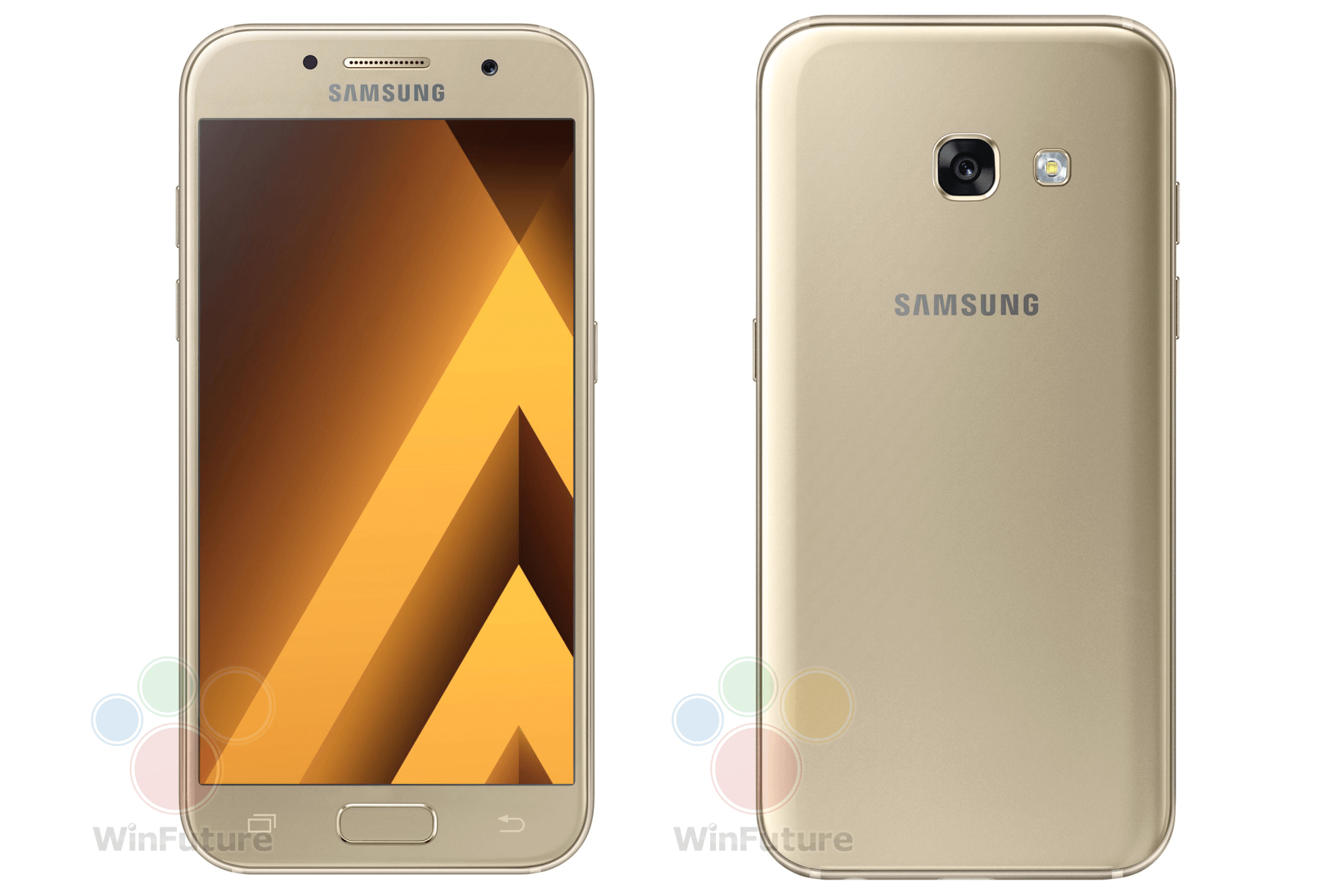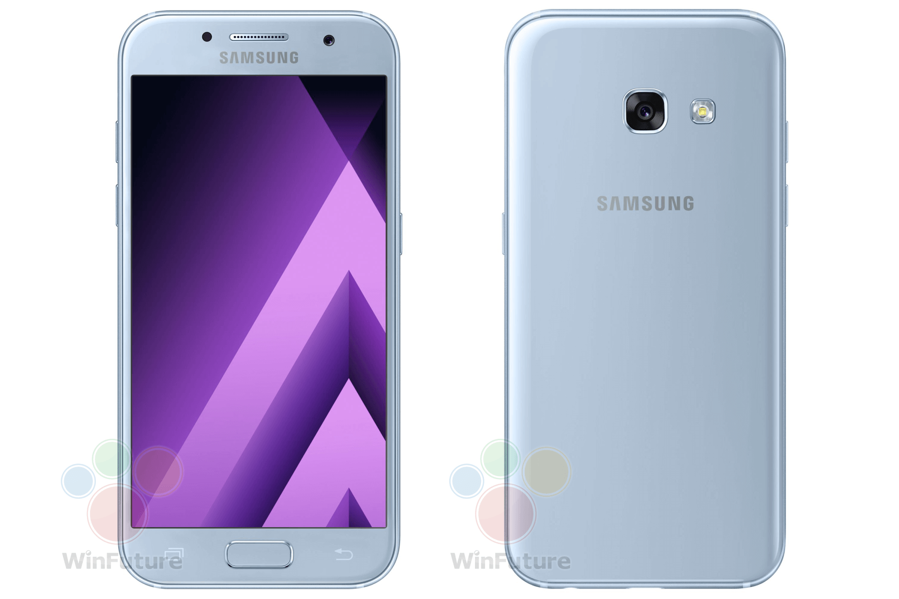 That clearly hints at water resistance as a main feature. The Galaxy A 2017 invite also has water droplets spread around again hinting at water resistance. The invite also talks about people who "live life on the edge or bask in spontaneous moments" hinting at active users. This event is thought to be the global launch for the smartphone. The second image here is a new leaked shot claiming to be the Galaxy A3 2017 and Galaxy A5 2017 phones.