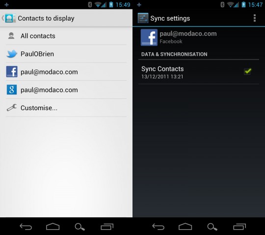 Facebook and Google may have fallen out over contacts sync, Google stripping support for adding Facebook friends into the Android address book back in the Nexus S days, but that hasn't stopped modders from adding it back into Ice Cream Sandwich. A newly released MoDaCo ROM includes contacts sync support once more, along with some relatively low resolution contact photos that show up for each user.