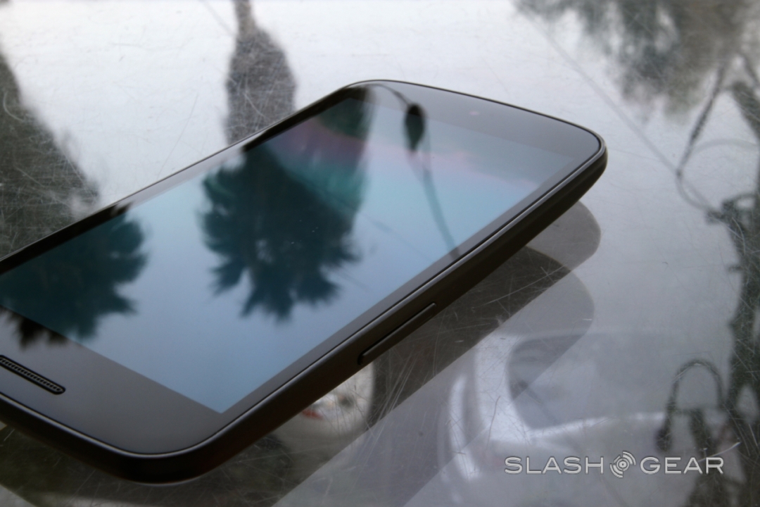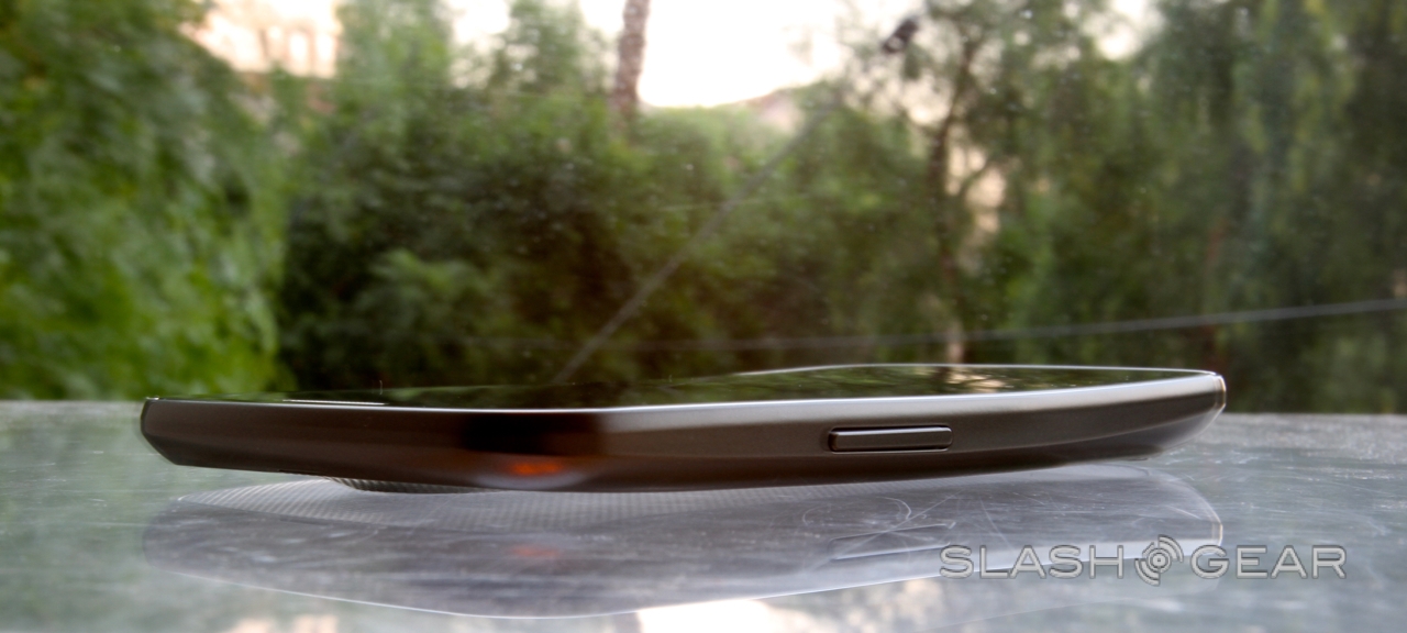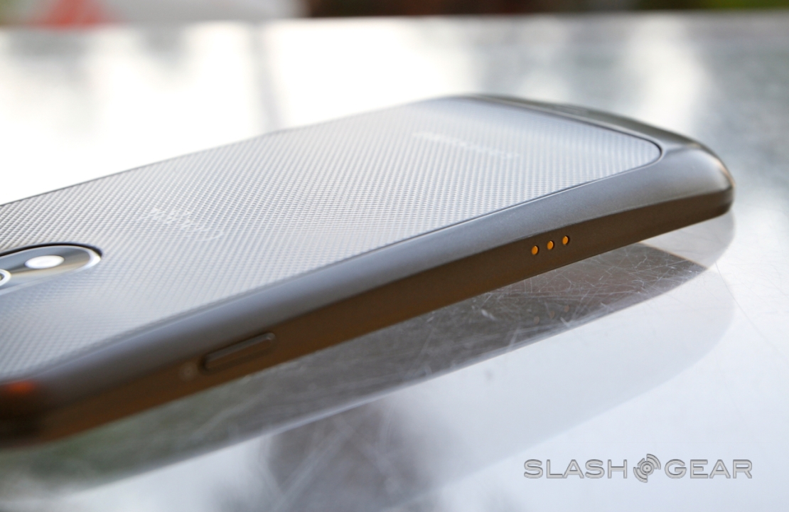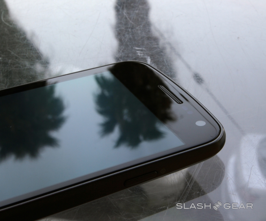 Samsung's casing materials aren't as instantly premium in their feel as, say, the Rezound's unibody chassis, but nor do they feel cheap or brittle. There's thankfully little in the way of glossy plastic, and the various textures feel good in the hand. Google says the Contour Display makes for a phone that's easier to hold and use one-handed, though reaching across the screen with a thumb can still be a stretch. We're more impressed by the minimal bezel around the display. Sound from the rear speaker seems surprisingly muffled, however, particularly noticeable during turn-by-turn directions in Google Maps Navigation.