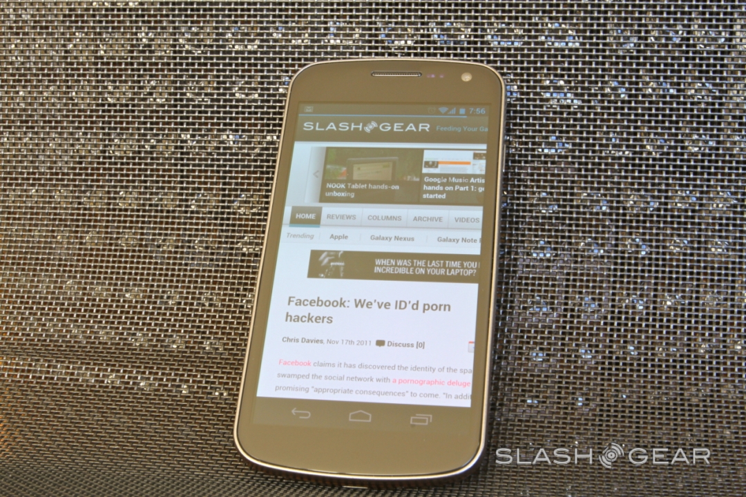 Could the Galaxy Nexus be the most anticipated Android phone of the holiday season? It certainly has some strong competition, with the DROID RAZR and HTC Rezound doing their level best to muscle into the market ahead of the first Ice Cream Sandwich phone's arrival. Still, Samsung's smartphone – and the third device to wear the official Nexus branding – has plenty to differentiate it, not just Android 4.0. The HSPA+ model has arrived on the SlashGear test bench; read on for our first impressions.