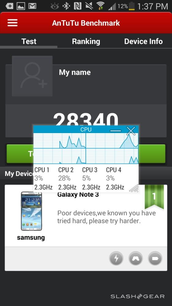 Ars Technica turned up a few codes inside the Samsung Galaxy Note 3 that suggest that a file called "DVFSHelper.java" is responsible for this boost in benchmark apps specifically. This file shows benchmarks like CFBench, Nenamark2, Quadrant, Linpack, and Geekbench 2. We wouldn't be surprised to find a similar file in a variety of smartphones on the market today (not necessarily the ones shown in this post, but still. We're also not entirely convinced that it's just Samsung's doing.