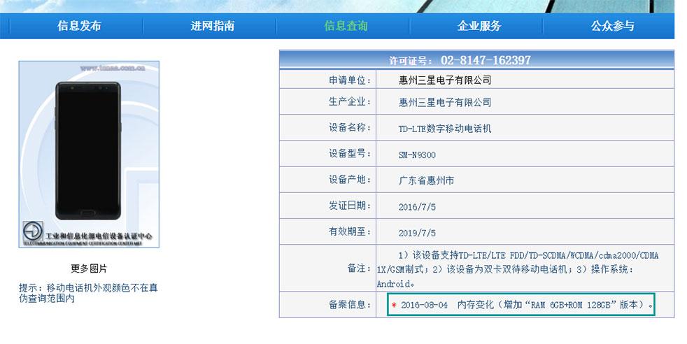 Talk about make other markets jealous. The tip of the 6GB RAM version of the Note 7 comes from a version of the smartphone that was spied on Geekbench and on the Chinese Industry and Information Technology Ministry. This version of the smartphone would pack 128GB of storage. If you recall, Samsung has already offered a version of the Note with 128GB of storage in the Note 5 that landed in South Korea last year.