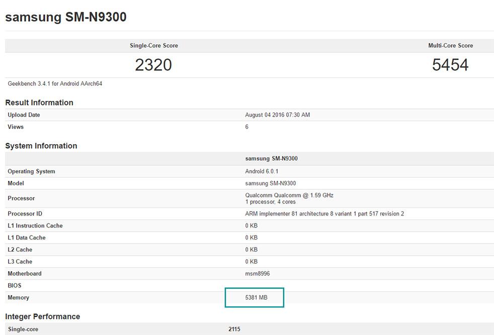 That said if Samsung wants to compete on paper with device packing 6GB of RAM like the OnePlus 3, it needs to do this in China. The benchmark lists the device as the Samsung SM-N9300 with single core performance of 2320 and multi-core performance of 5454. If you want to know more about the Galaxy Note 7 we can get here in the States, you can check out our other Note 7 content in the timeline below.