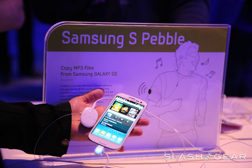 Finally there's the S-Pebble MP3 Player accessory. This little beast will be pushed with the Galaxy S III (at the same time as the smartphone's release more than likely) and will act as a standalone music player with earbuds to boot. Extremely simple and more than ready to work with your smartphone without the assistance of an additional PC. Imagine the excellence for this summer!