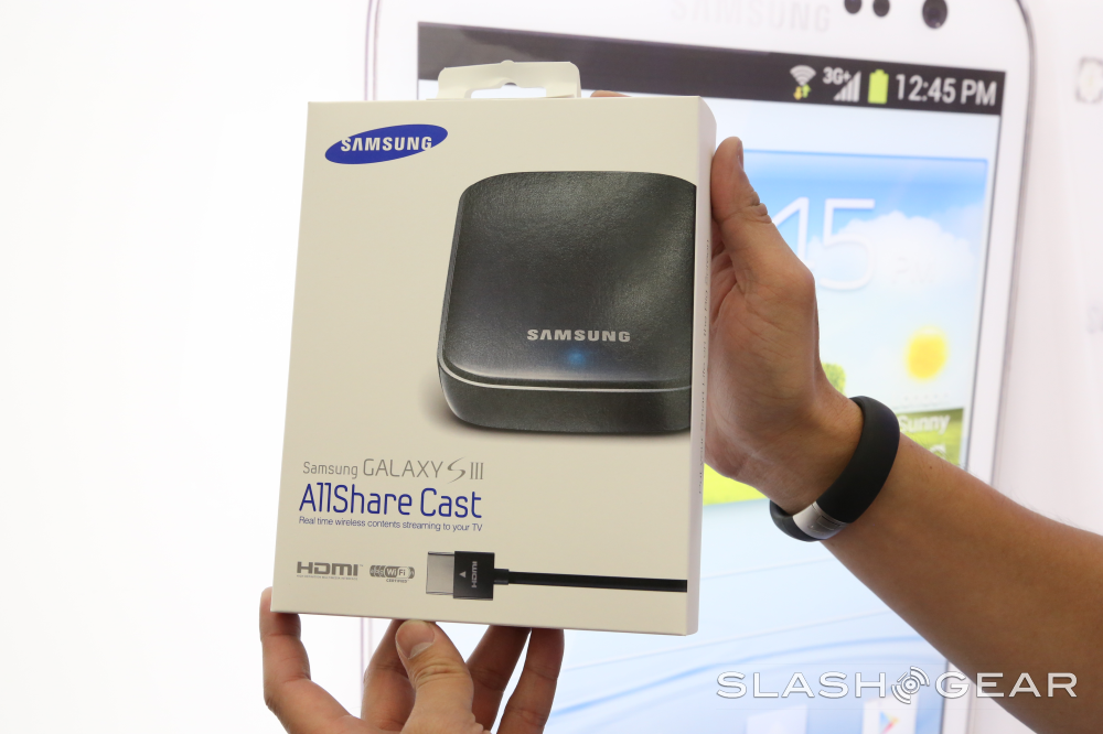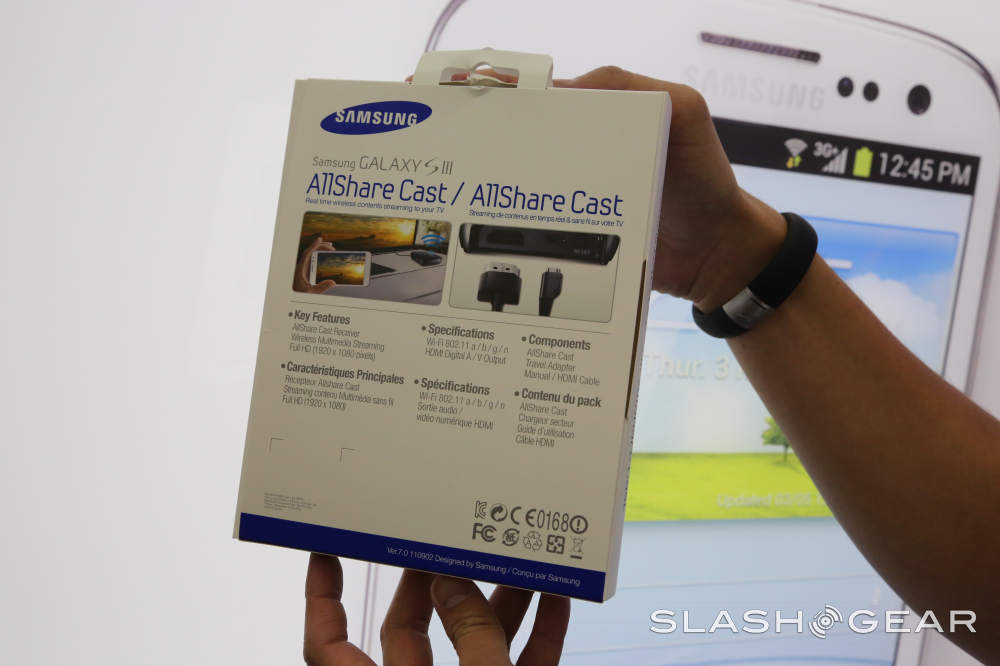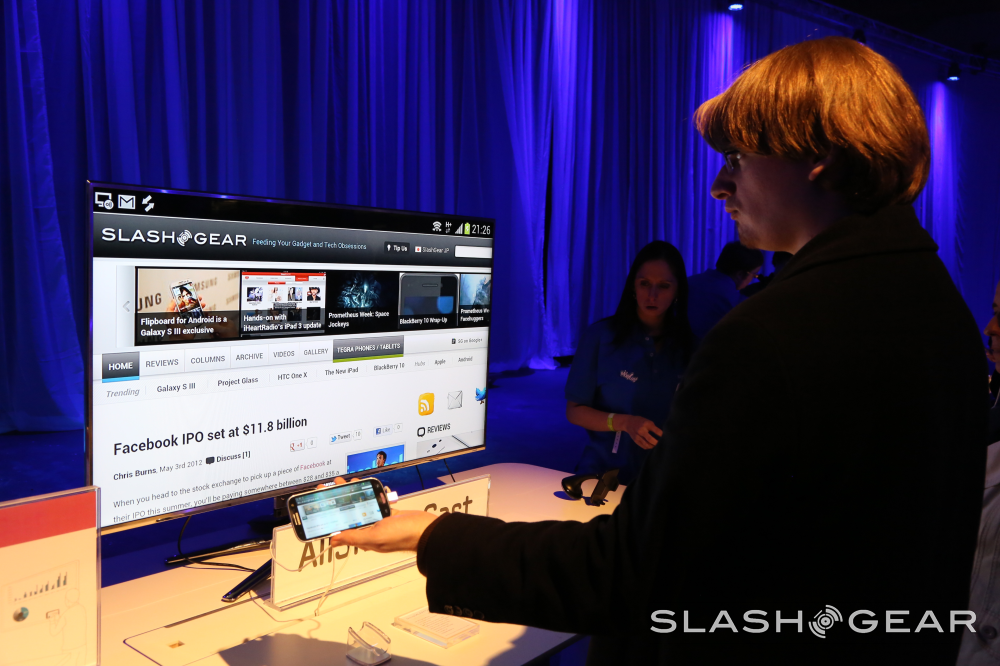 First have a peek at AllShare Cast, a system with which you'll have one base station connected to your television with an HDMI cord and your Samsung Galaxy S III which wirelessly connects to this station and allows you to mirror the content you've got on your smartphone to your HDTV with ease. Have a peek at this functionality in the hands-on video demo we've got here: