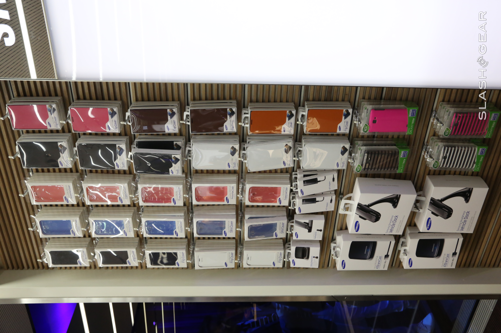From there it's all about charging and protecting, Samsung presenting one dock that appeared at first to be the Wireless Charging Kit mentioned in the presentation earlier today, but indeed it is not quite that. Instead its a slightly more traditional dock with aspirations for showing the device off in all its vertical glory. Note the front and the back (as seen in the gallery below) and the fact that it's not quite out in the open yet.