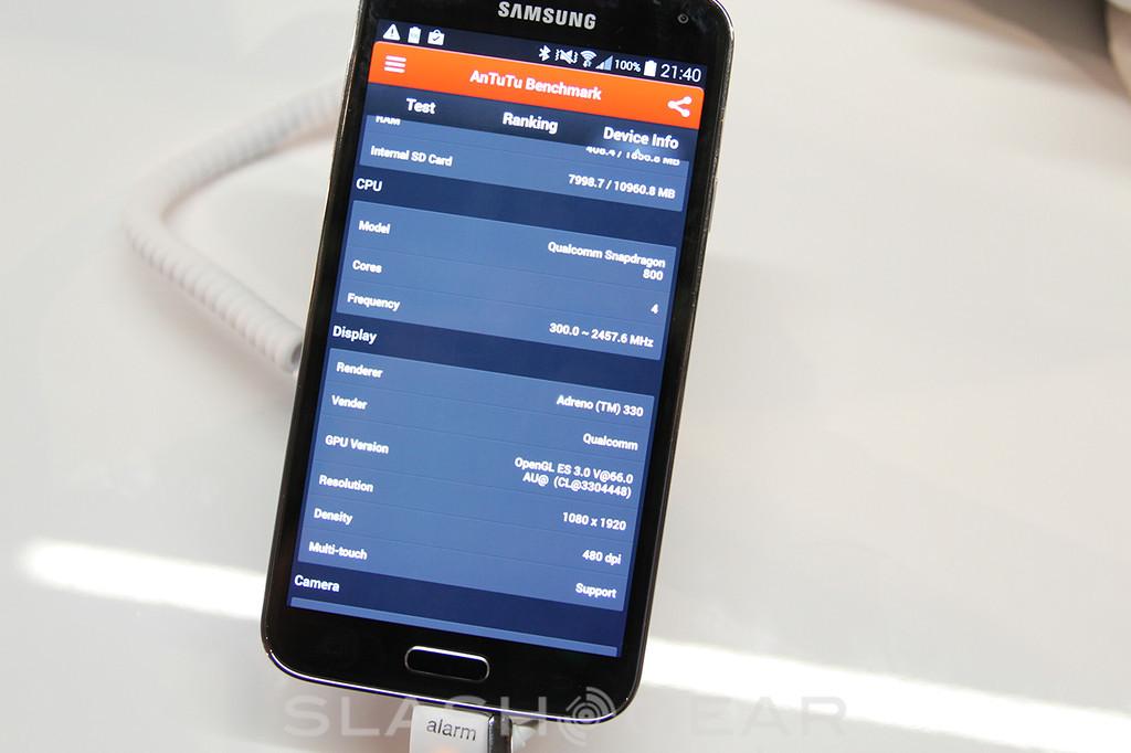 Of IMPORTANT NOTE is the fact that the Samsung Galaxy S5 we've tested here suggests that these EARLY TEST MODELS with NON-FINAL SOFTWARE BUILDS are using the Qualcomm Snapdragon 800. This means that the final build will quite likely be much MORE powerful by the time the device launches.
