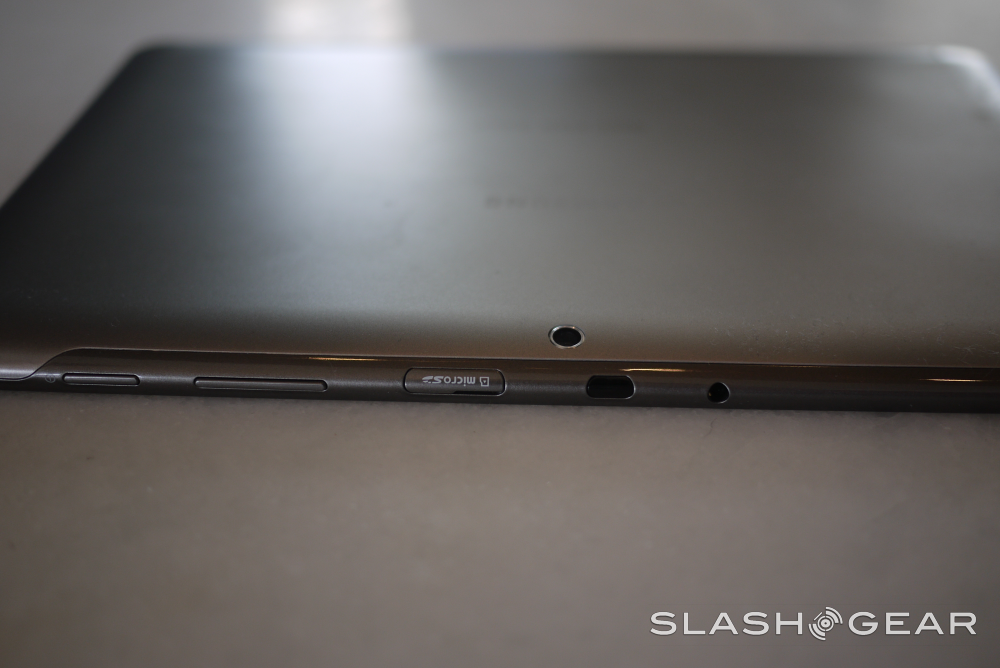 We got our hands-on this device back at the announcement of its release here in the United States and can say this: it's extremely similar to the original. What you've got here instead of what we had back a year ago with the original 10.1 is some front-facing speakers and a bit different processor on the inside as well as a couple other enhancements. Notable for those who love to customize, this device has a microSD card slot for memory expansion and does indeed use Android 4.0 with the newest version of Samsung TouchWix UX on top for a sweet tablet experience.