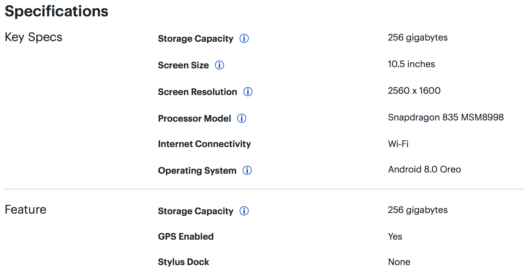 This device comes with a 10.5-inch display with 2560 x 1600 pixel resolution and Android 8.0 Oreo right out the box. This device connects with USB-C and has a couple different options for internal storage size. The cheaper version of this unit has 64GB internal storage, while the more expensive version has 256GB, and both versions have a microSD slot for storage expansion.