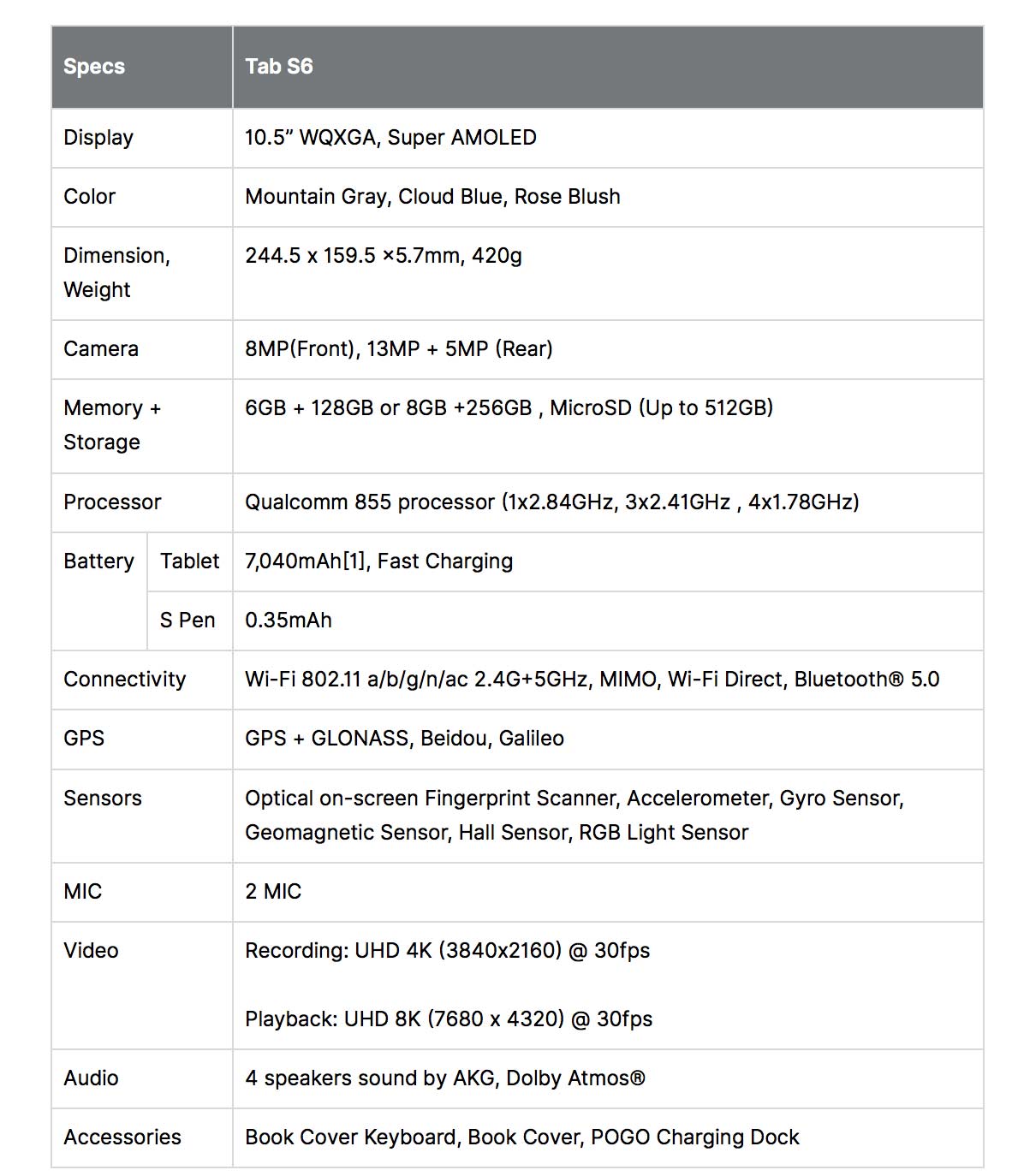 Galaxy Tab S6 Price And Details Launch Pre-Note 10