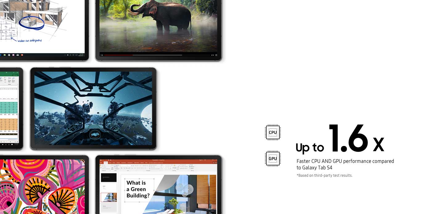 The Galaxy Tab S6 is positioned above the Galaxy Tab S5e with specs that push into the future for performance and support for features aplenty. The display on this machine is 10.5-inches large with 2560 x 1600 (WQXGA) resolution. This device's display is Super AMOLED for super-bright and super colorful imagery and video.