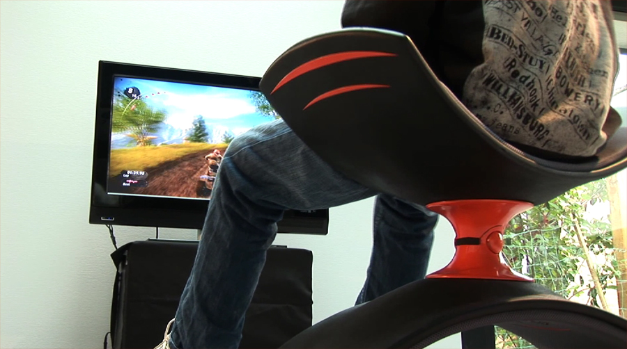 If your kids aren't interested in a Wii but you'd still like them to get some exercise benefit out of their console, the GAMEROX gaming chair might be the solution. Resembling a couple of mudflaps, the GAMEROX chair moves in all three axis and, by making the child support themselves rather than slump, trains core stability, tones muscle and improves posture.Video demo of the GAMEROX gaming chair after the cut