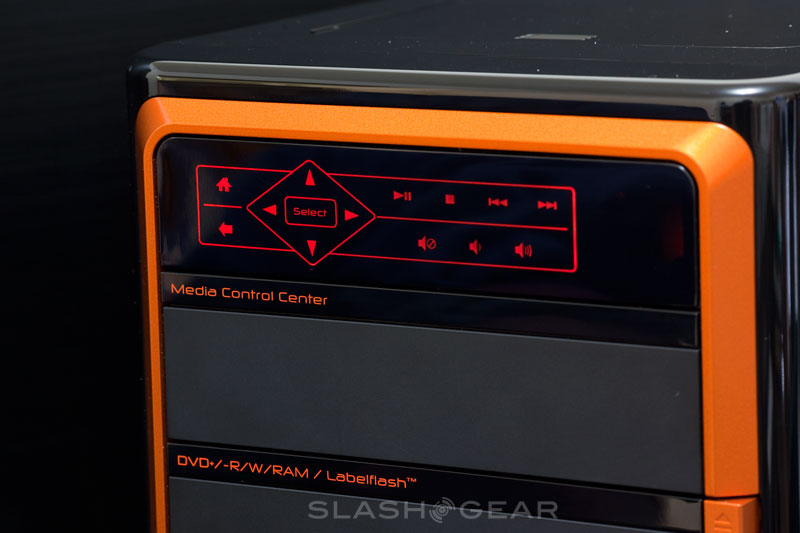 The first drive bay features a touch-panel multimedia controller, with a grid of orange-backlit buttons. They glow beautifully and are easily visible even in bright ambient light conditions, but we question its usefulness. In our tests, not only were a few of the buttons reluctant to work, there were also a few hiccups while navigating a DVD. Also, desktop PCs are more usually positioned low down on the floor; I'm less inclined to browse a movie at that level.