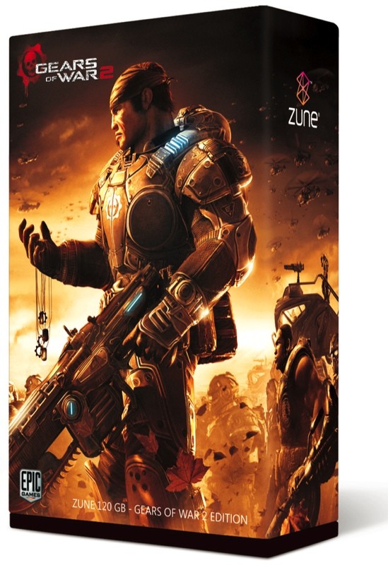 Microsoft have announced a special edition Gears of War 2 version of their Zune PMP, taking the 120GB version of their latest media player and branding it with the upcoming XBox 360 title. Set to launch at the same time as the game, on November 7th, the GoW2 Zune has a laser-etched Crimson Omen on the back, themed packaging and 244 pieces of preloaded game-related media.