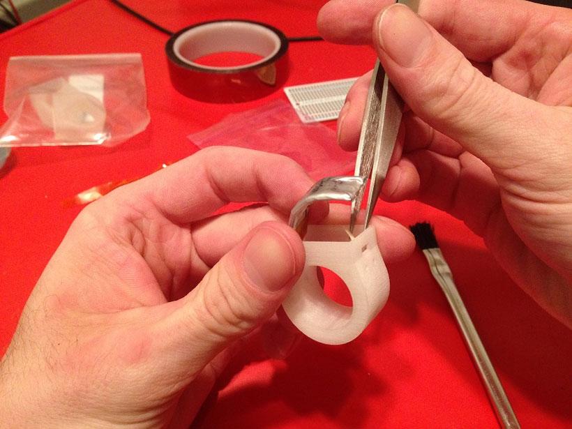 The ring is programmed via mbed developer software allowing programming from any tablet of PC to be sent to the ring via USB. The ring body was made using a 3D printer. Check the video to see more details on the ring and its build.