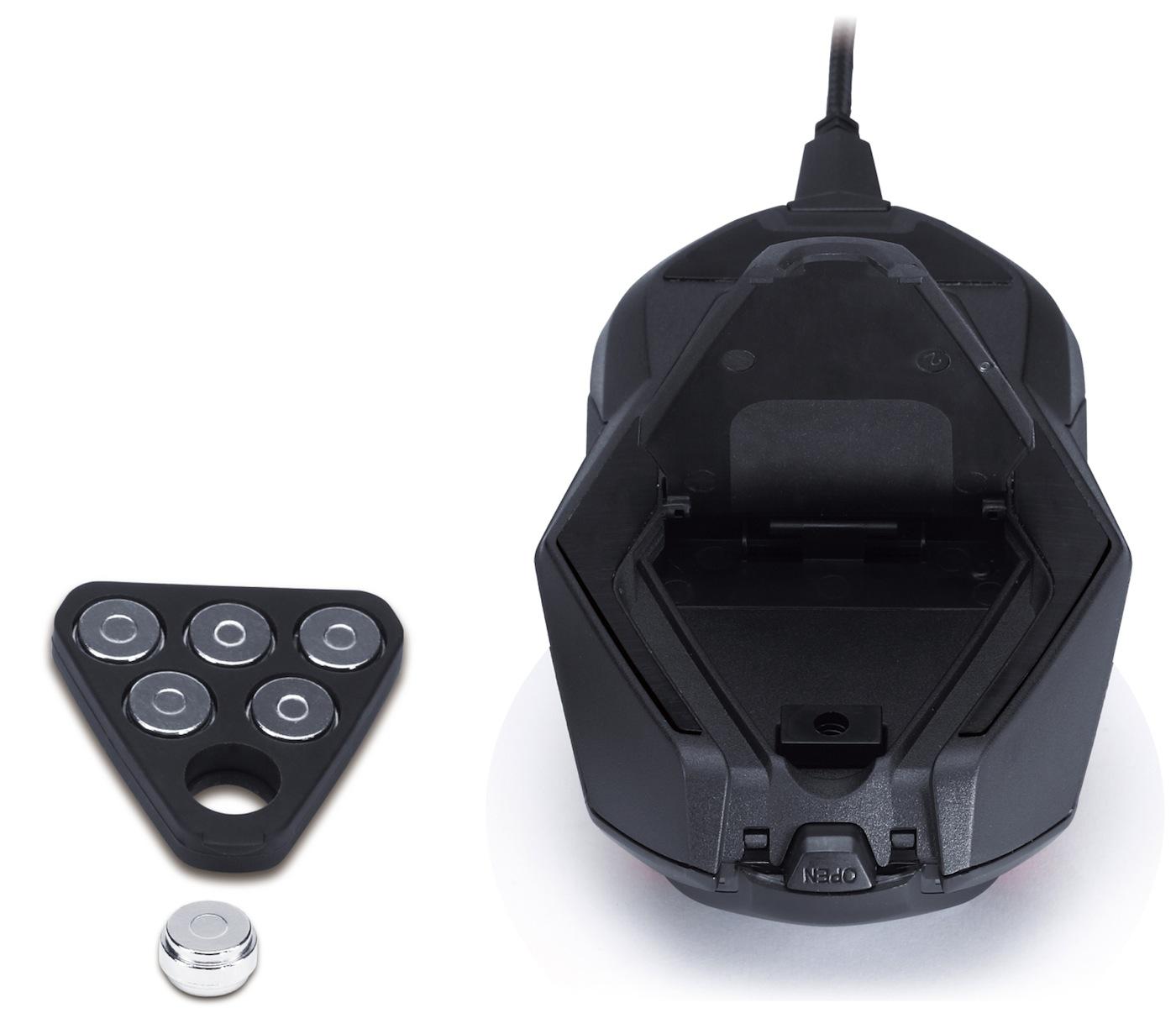 Five levels of precision – from 200dpi to 8200dpi – are supported, and the setting can be changed mid-game. Meanwhile, unlike a regular mouse (either computer or live), you can open up a panel on the base of the Gila and slot in up to six of the supplied weights, each 4.5g, to adjust the heft of the peripheral to suit your preferences.
