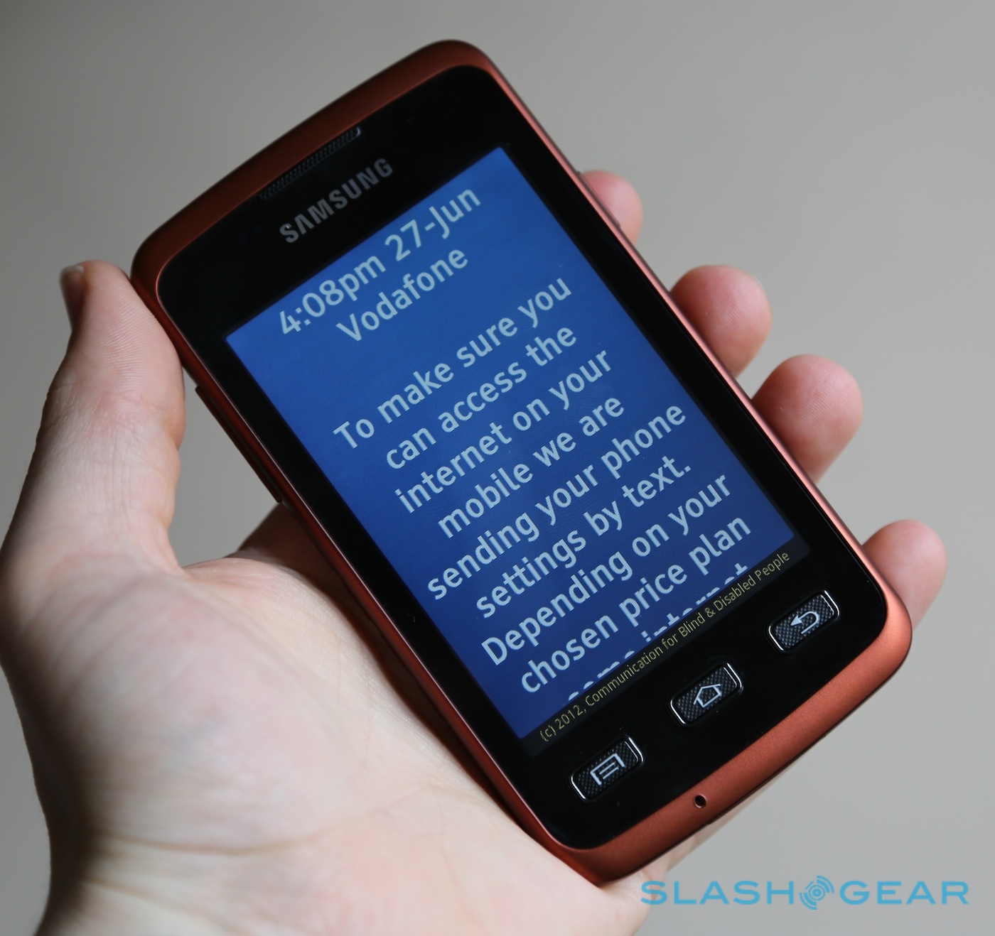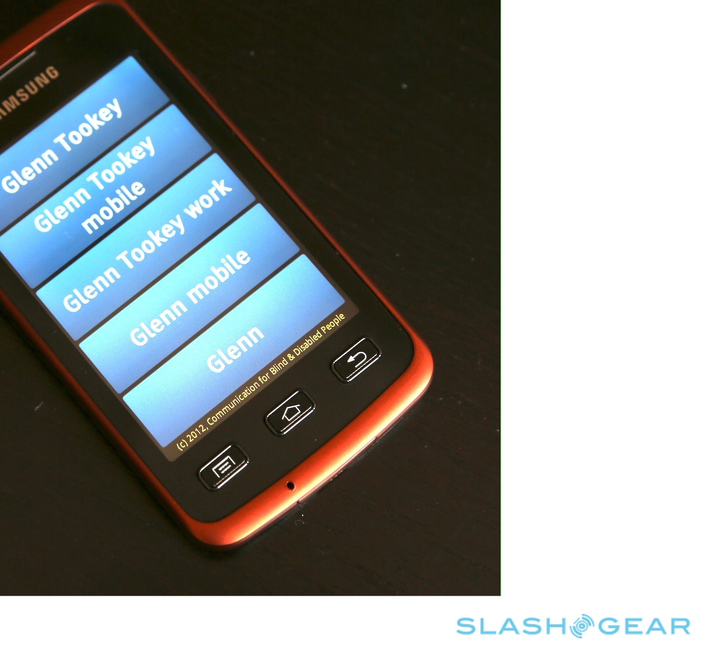 Meanwhile, there are some useful haptics to help guide you through the UI. The phone buzzes periodically anyway, to let you know that the screen is on, and each tap and press is accompanied by a companion vibration. Sweep your finger across the icons and there's a buzz when you move from button to button. It doesn't sound like much, but close your eyes (if you're not blind or partially-sighted already) and it does make figuring out the limits of the interface more straightforward.